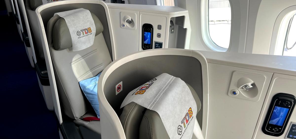 MIAT Mongolian Airlines 787 business class cabin & seats