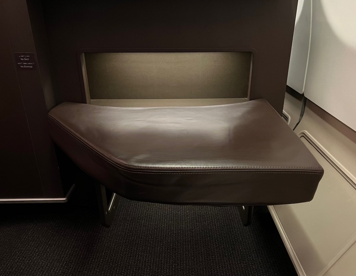 The only other storage option is that you can place items underneath the ottoman — it would be quite easy to store a personal item under there during the flight, for easy access.