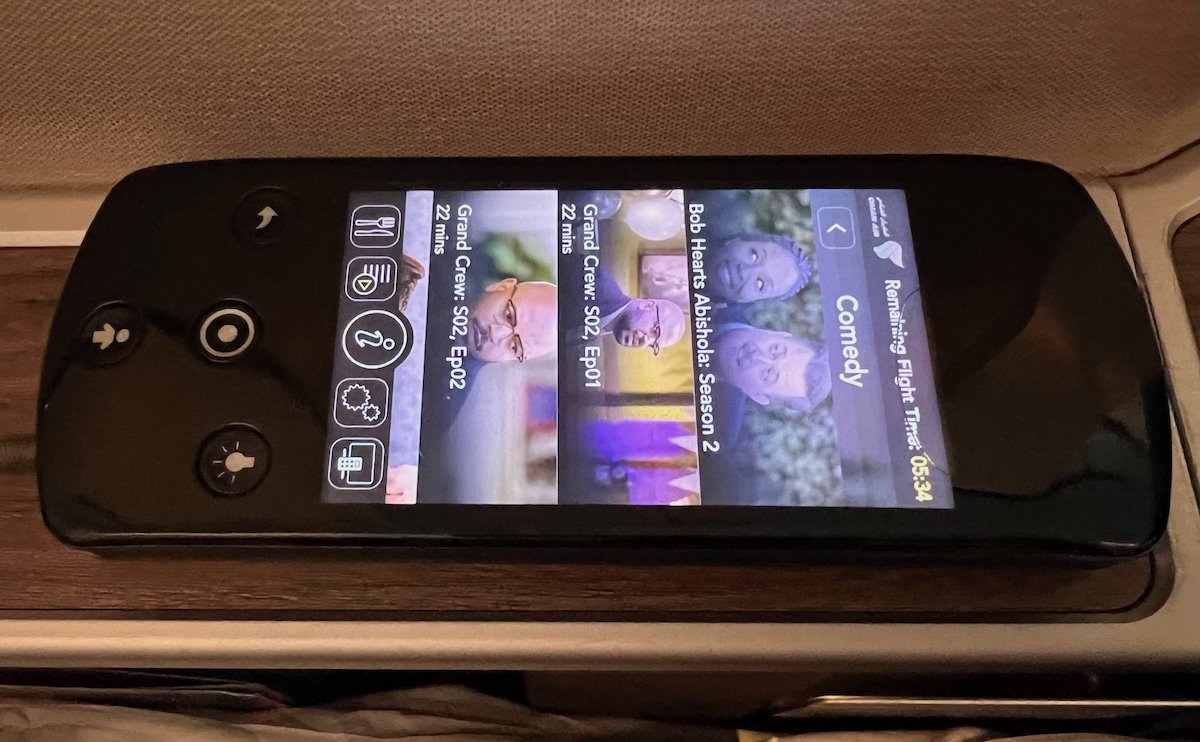 Sadly there’s not even a way to use the controller to view the selection on the main screen, but rather you have to view all the entertainment options on the little controller, and it sure isn’t easy to use. I find this to be such an annoying setup, as this is so much worse than on the 787.