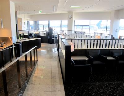 The lounge is located one level under the concourse (accessible by stairs or an elevator), so the only thing on the concourse level is the reception desk.