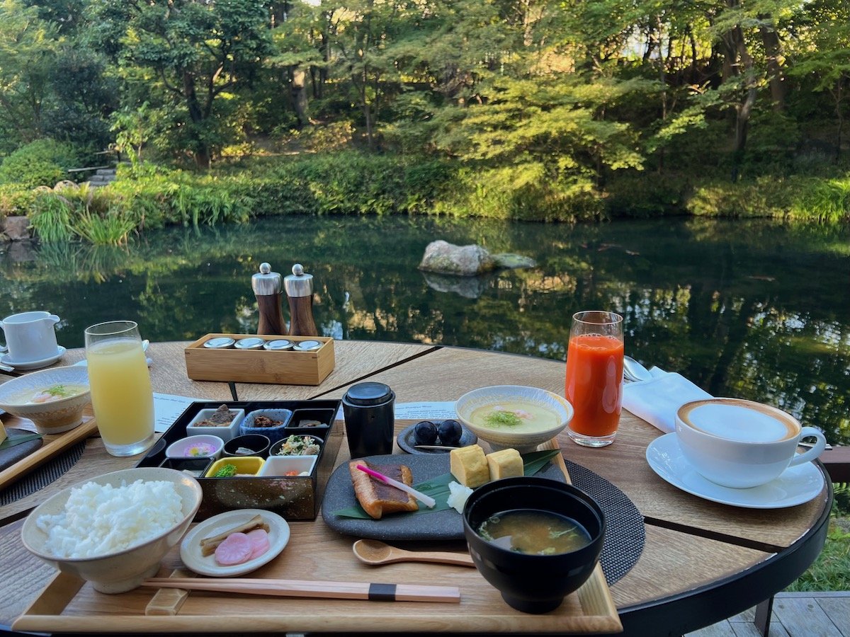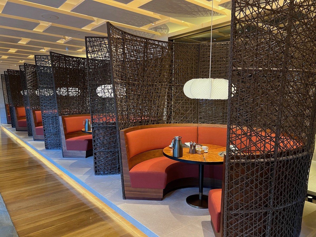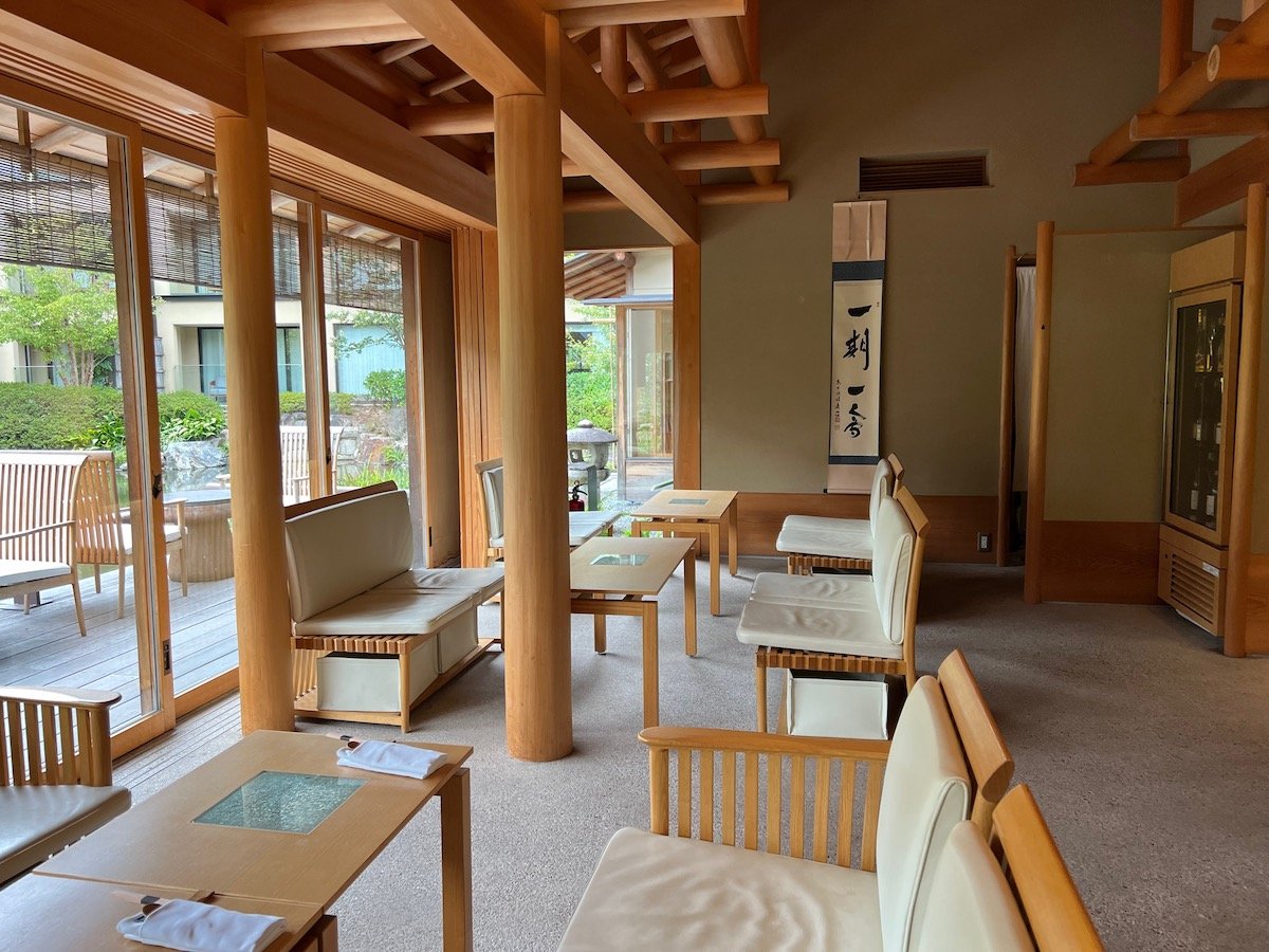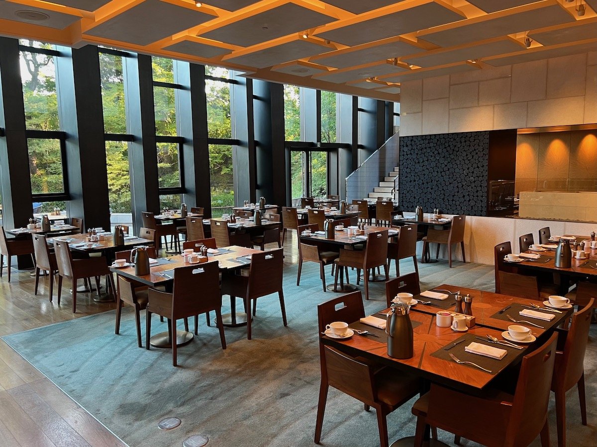 As far as dining at the Four Seasons Kyoto goes, Brasserie is the hotel’s all-day dining restaurant. It’s where breakfast is served, and it’s also open for lunch and dinner (during the day it’s a French restaurant, and you can find the lunch and dinner menu here). The restaurant has really high ceilings, plus floor-to-ceiling windows, giving the restaurant lots of natural light.