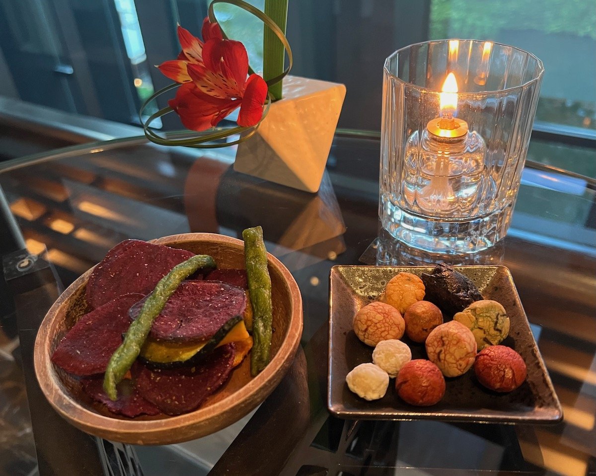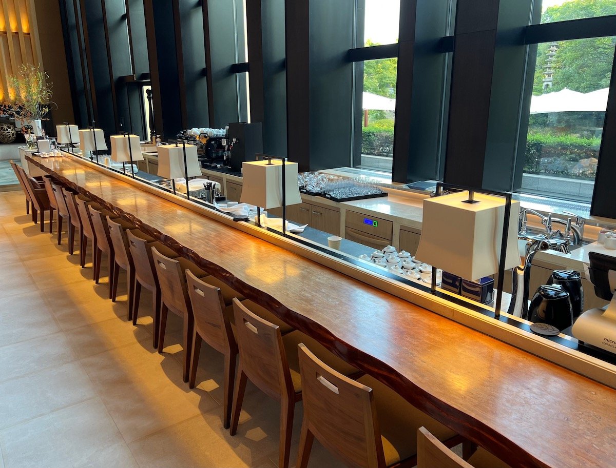 The Four Seasons Kyoto Lounge & Bar is located on the lobby level, and is open daily from 12PM until 10PM. This is a traditional hotel lobby bar, and offers a selection of light snacks, afternoon tea, and any drink you could imagine, ranging from coffee to cocktails. The bar overlooks the Brasserie, as well as the hotel’s outdoor space.
