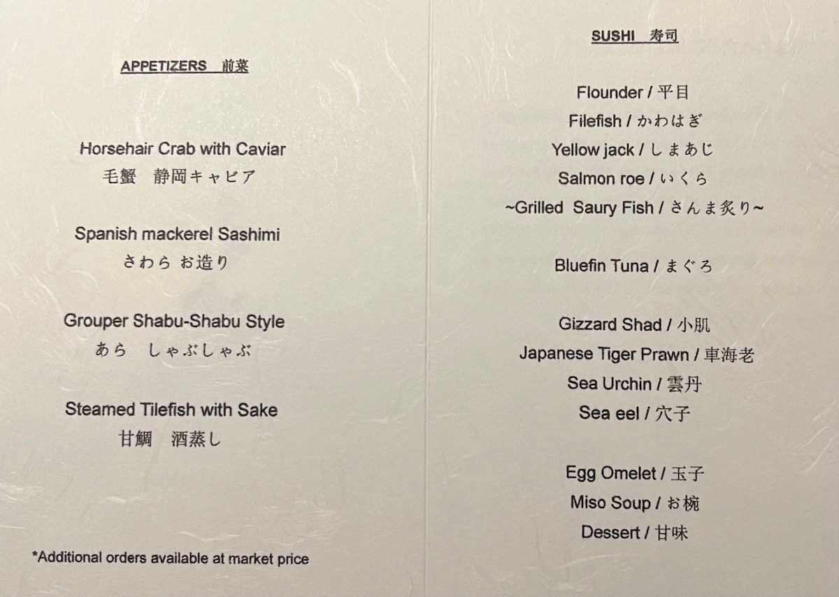 Sushi Wakon has an omakase concept, and you can find the menu for our evening below.