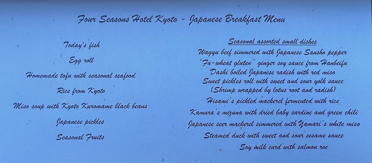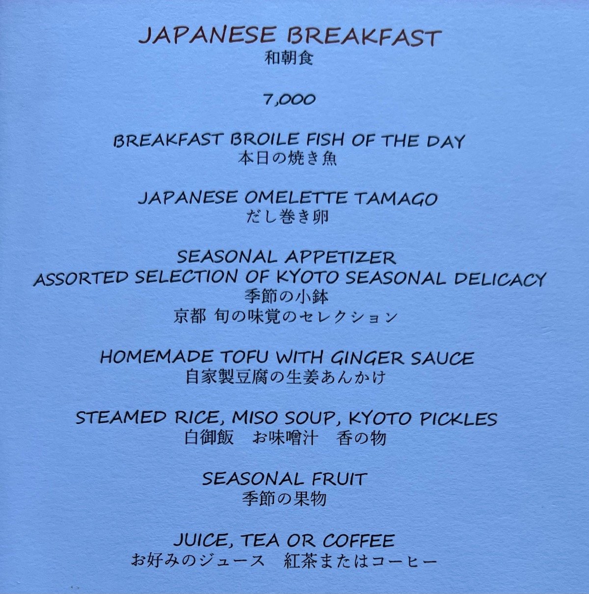 The second morning we decided to have the Japanese breakfast. This changes every day, and below you can see the menu for the day that we enjoyed it.