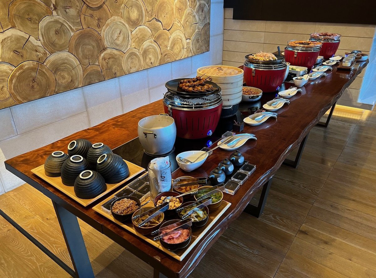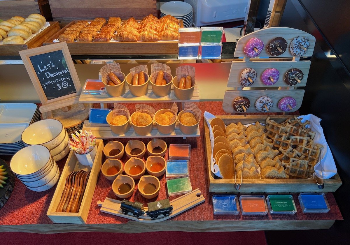The breakfast buffet was extensive, and consisted of fresh fruit, cold cuts and cheese, salad, cereal, yogurt, all kinds of pastries and bread, fresh juices and smoothies, and several hot options, some of which were more Asian focused.