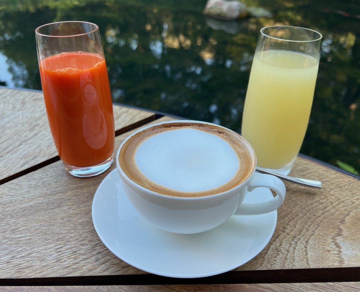 The fresh juices and cappuccinos were very good, and I also enjoyed the veggie omelet that I had.