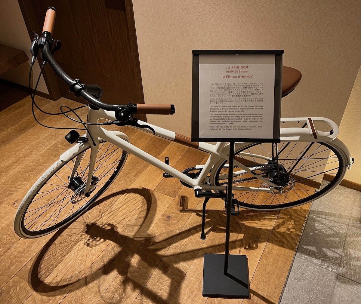 The lobby has quite some fun design elements, like an Hermes rickshaw and bicycle.