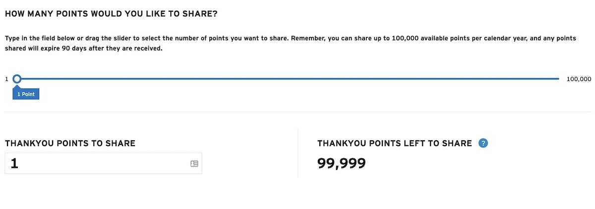 Citi lets you share up to 100,000 ThankYou points per year with any other ThankYou member, which is a great feature. However, there are some restrictions to be aware of: