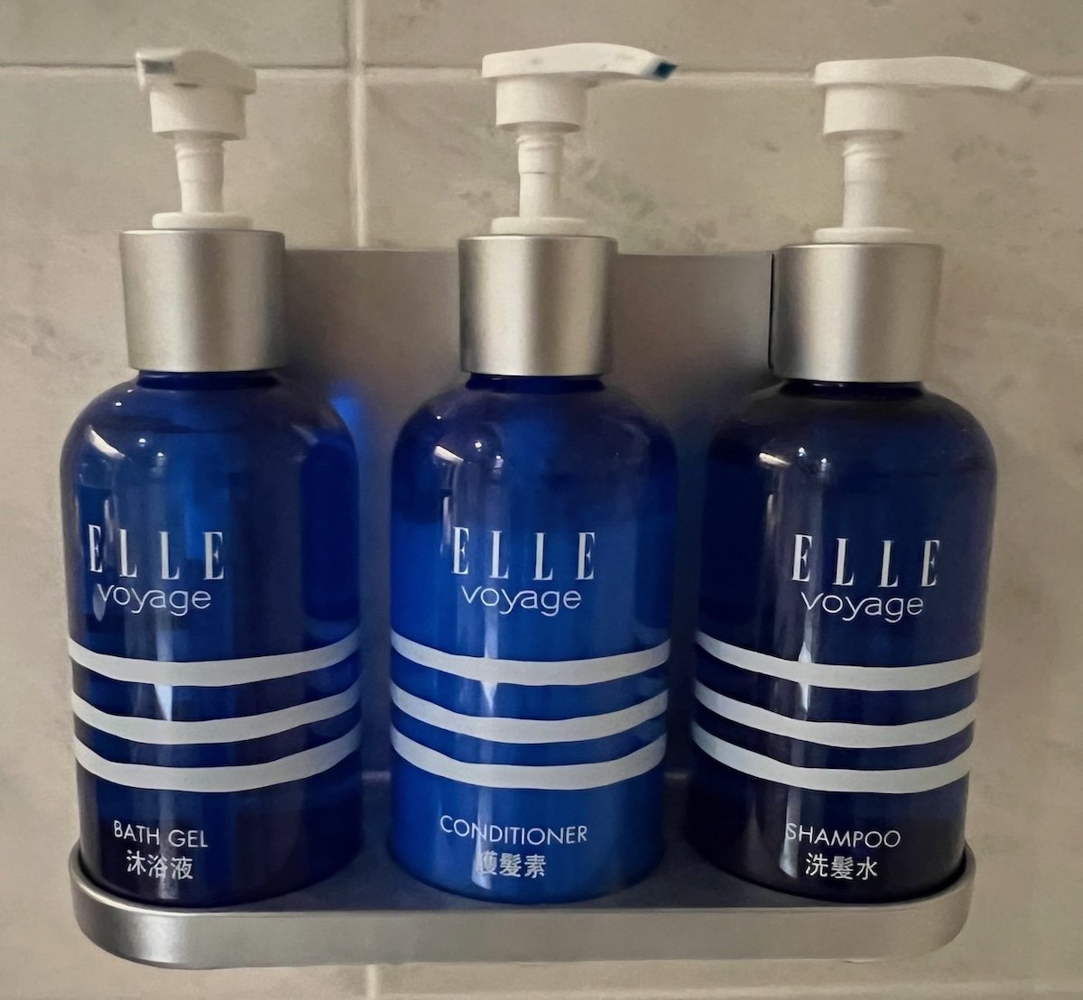 Toiletries were in reusable wall-mounted containers, and were from ELLE Voyage.