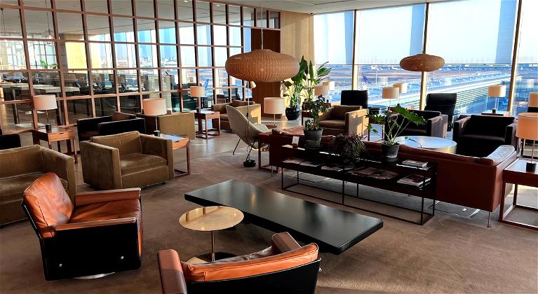 The largest part of the lounge also has the most residential feel, and boasts all kinds of seating options that will make you feel like you’re in a swanky living room rather than in an airport lounge — it’s quite the contrast to the nearby TIAT Lounge.